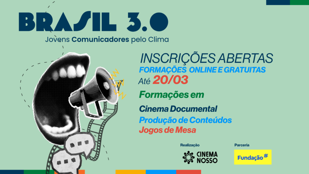 Garanta sua vaga e vem com o Brasil 3.0 – Jovens Comunicadores pelo Clima. Abriram as inscrições para o Brasil 3.0 | Jovens Comunicadores pelo Clima, iniciativa do Cinema Nosso com apoio da Fundação Banco do Brasil ( @fundacaobb ) que oferece formações gratuitas para jovens do Rio de Janeiro e do Pará nas áreas […]
